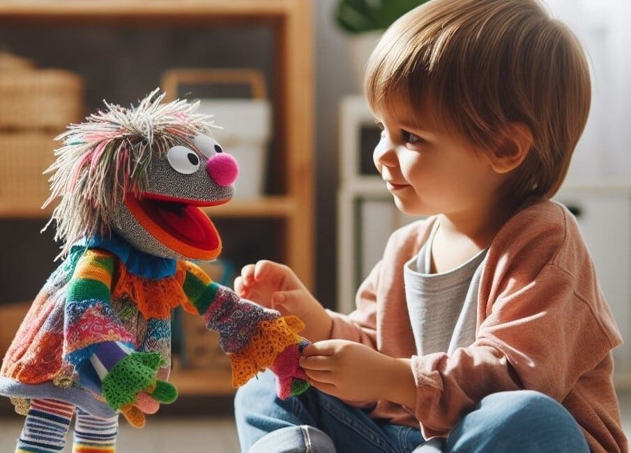 En la Terapia de Juego Cognitivo-Conductual, los títeres, los animales de peluche, los libros, los materiales artísticos y otros juguetes son herramientas utilizadas para modelar los comportamientos y las estrategias cognitivas de los niños.