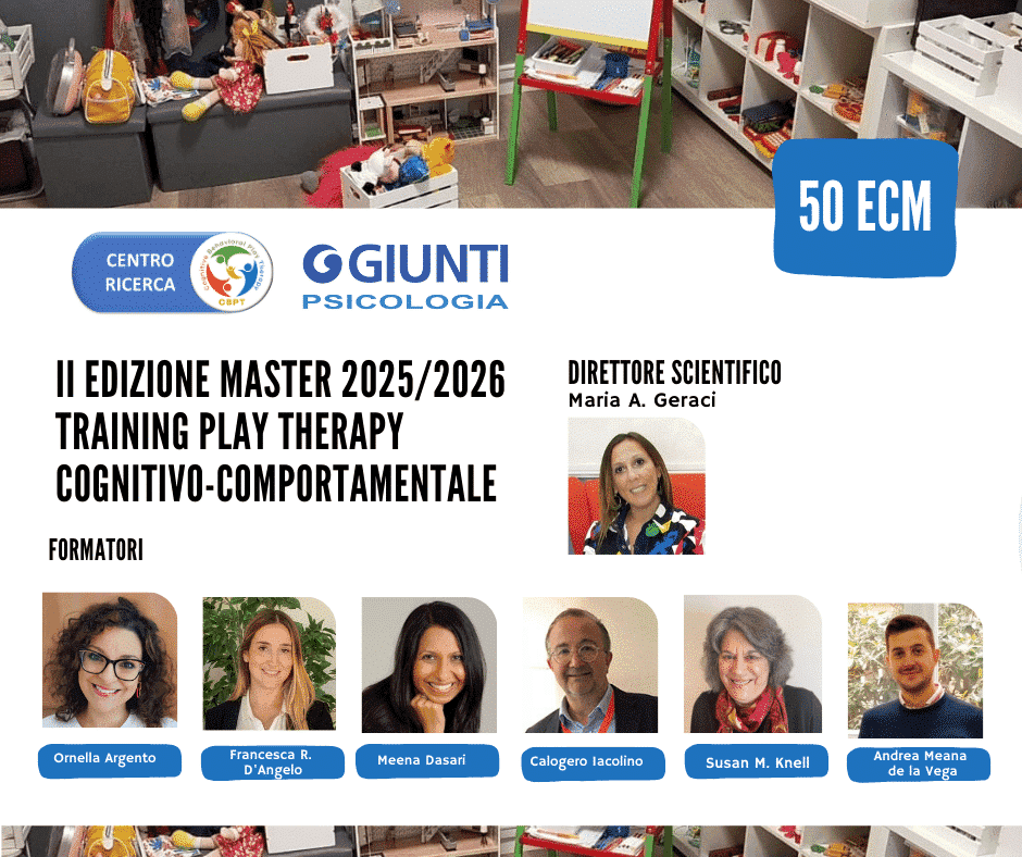 SECONDA EDIZIONE MASTER TRAINING IN PLAY THERAPY COGNITIVO-COMPORTAMENTALE in partenariato con Giunti Psicologia è accreditato per il riconoscimento di 50 crediti ECM.